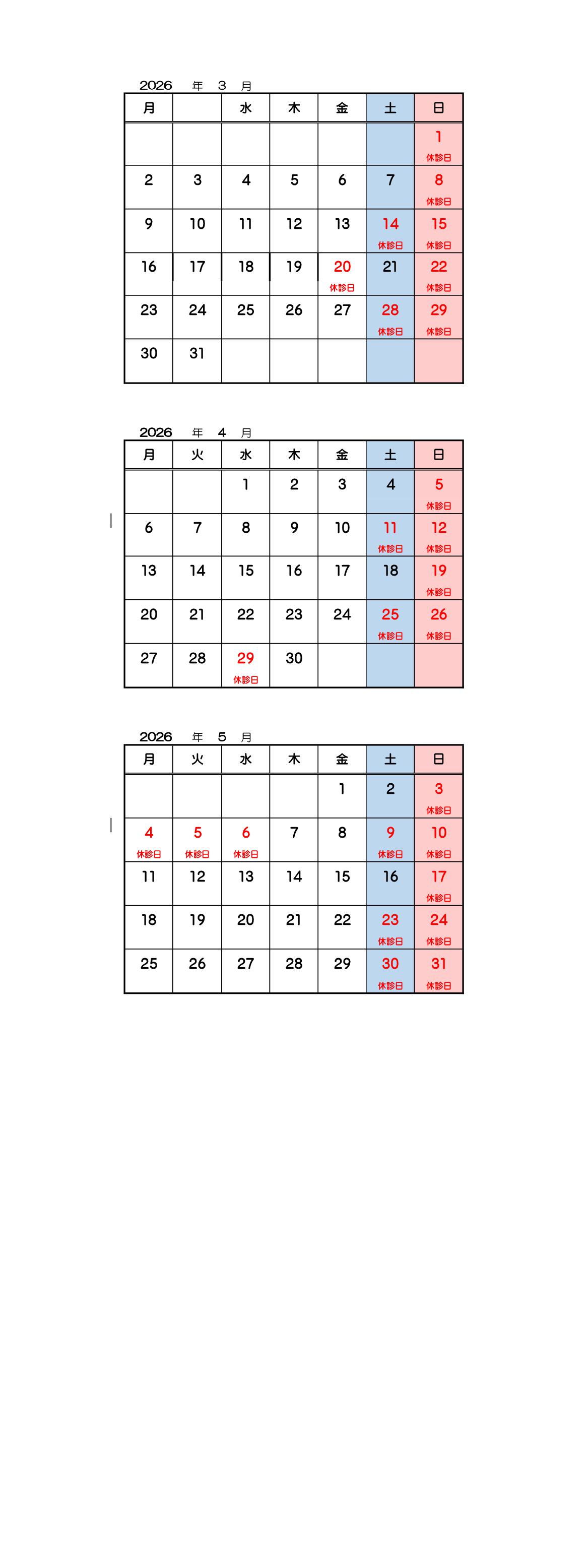 変更になる場合が御座いますので、当ホームページの「お知らせ」欄も合わせて御覧下さい。
